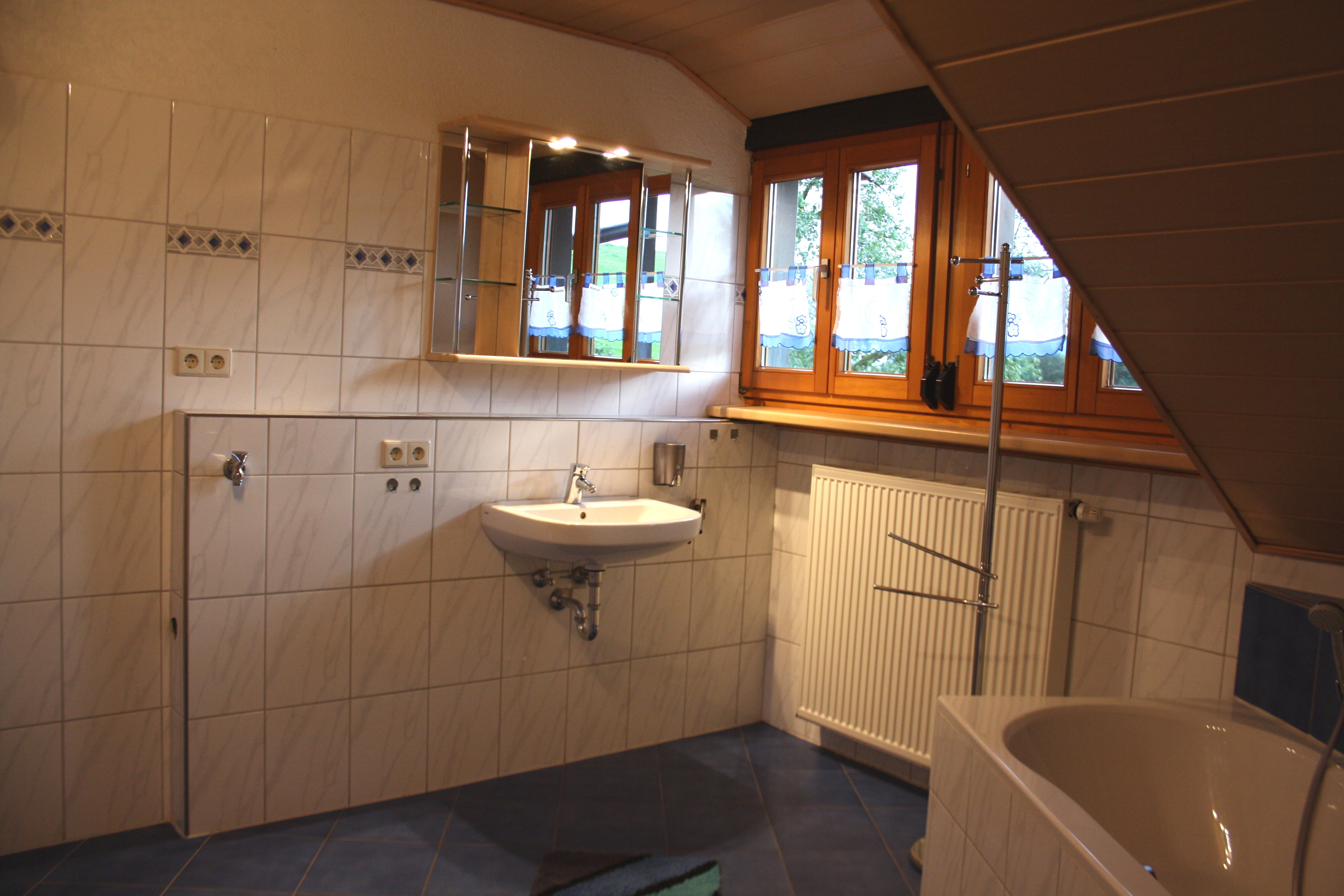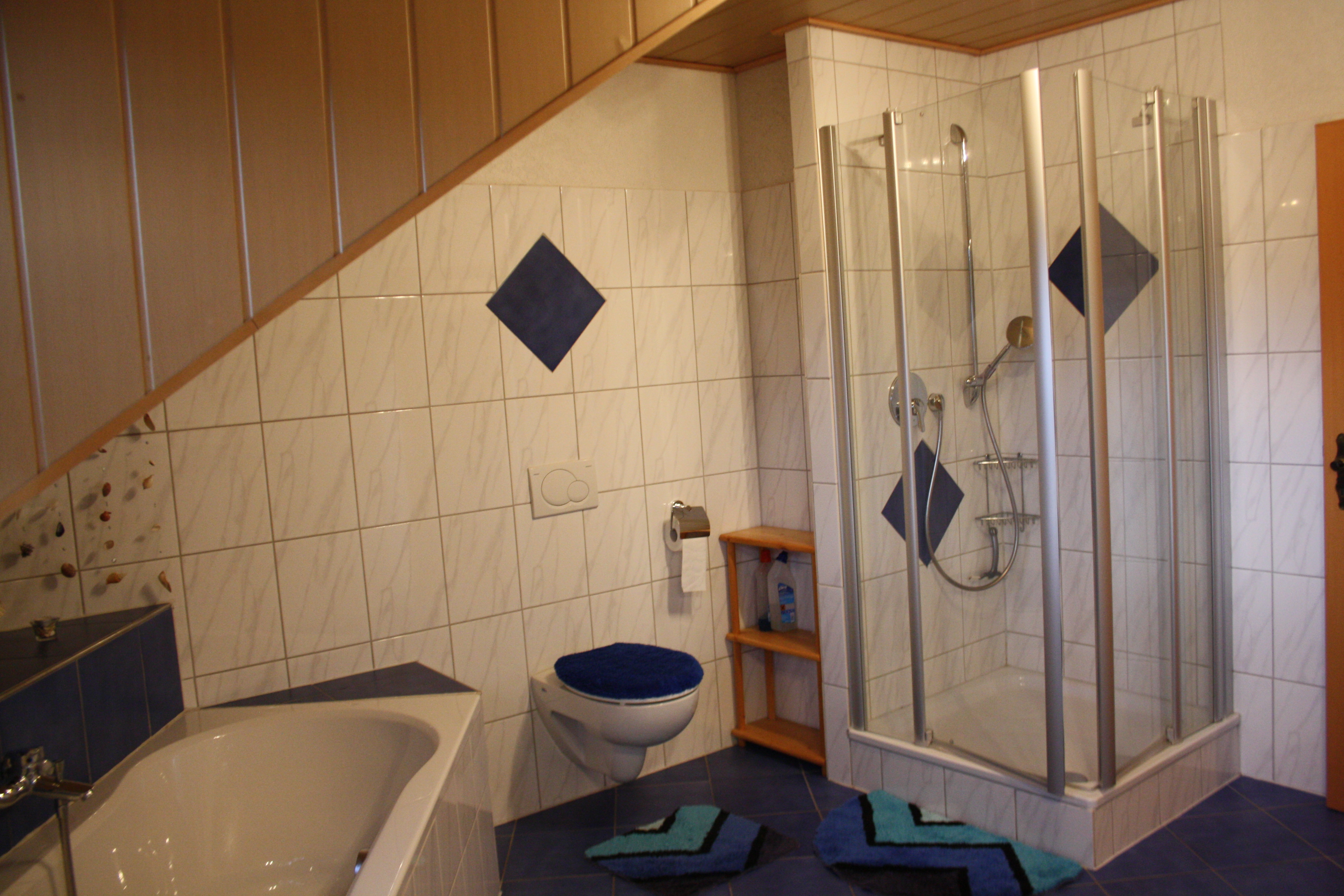 - Bad: Waschbecken, WC, Dusche und Badewanne
